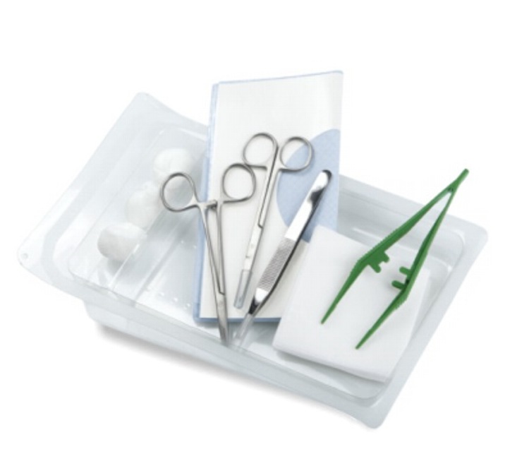 - Elemente aus Plastik (z.B. Nabelschnurklemme, Pinzetten, usw.) oder Metall in einer sterilen Verpackung