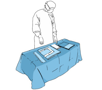 Die Seiten des Tuches ausfalten so, dass sie frei vom OP-Tisch hängen.