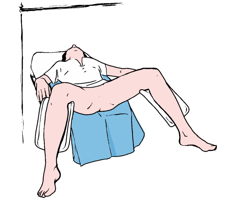 Das kleinere Tuch unter das Gesäß des Patienten legen, das sich in urologischer Position befindet.
