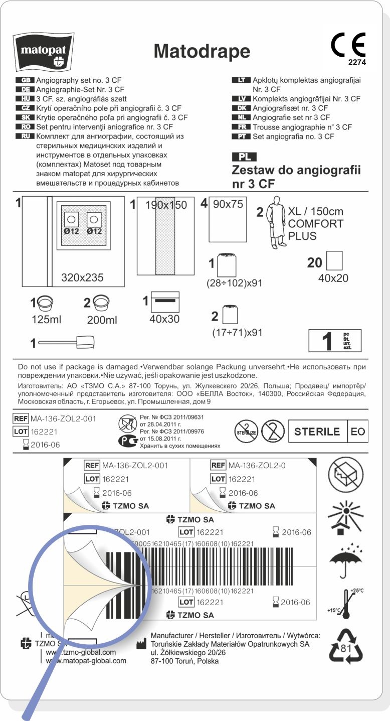 - EAN-28-Barcode mit folgenden Infos: Produkt EAN-Barcode, Chargennummer und Verfallsdatum – ermöglicht im Krankenhaus elektronische Aufzeichnungen der verwendeten Produkte zu halten.