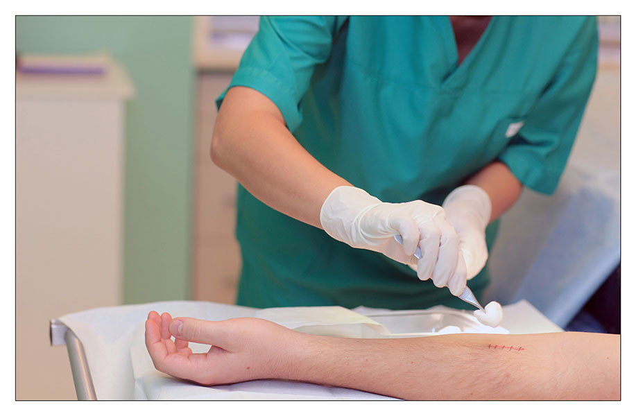 - akute Wunden – Schnittwunden, chirurgische Wunden mit glatten Rändern und ohne wesentlichen Gewebsverlust. Solche Wunden werden mit Hilfe von Nähten, Klammern oder Verband geschlossen, und sie stellen primär heilende Wunden dar, was ca. 6-7 Tagen dauert. Das ist die günstigste Art und Weise der Heilung und es wird primäre Heilung genannt.