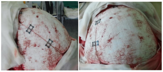 Die Operation hat ca. drei Stunden gedauert. Die reine Anpassung der Prothese Codubix® CT dauerte ca. 30 Minuten. Die Teile der Prothese wurden mit Titanplatten der Firma Aesculap AG verbunden. Mit den Titanplatten der Firma Aesculap AG wurde die Prothese auch an die Schädelteile befestigt.