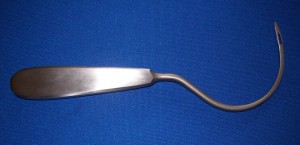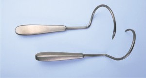 Zur sicheren Implantation der Bänder Dallop® NM wurden auch entsprechende Applikatoren entworfen: modifizierte TVT-Nadel, modifizierte Emmet-Nadel und modifizierte gebogene Emmet-Nadeln (links und rechts). Die Modifizierung aller Applikatoren beruhte auf Anpassung von Endungen an die Befestigungsgriffe der Bänder, damit der Bandgriff am Applikator in der Weise befestigt werden konnte, die sichere Einführung des Bands ermöglicht.